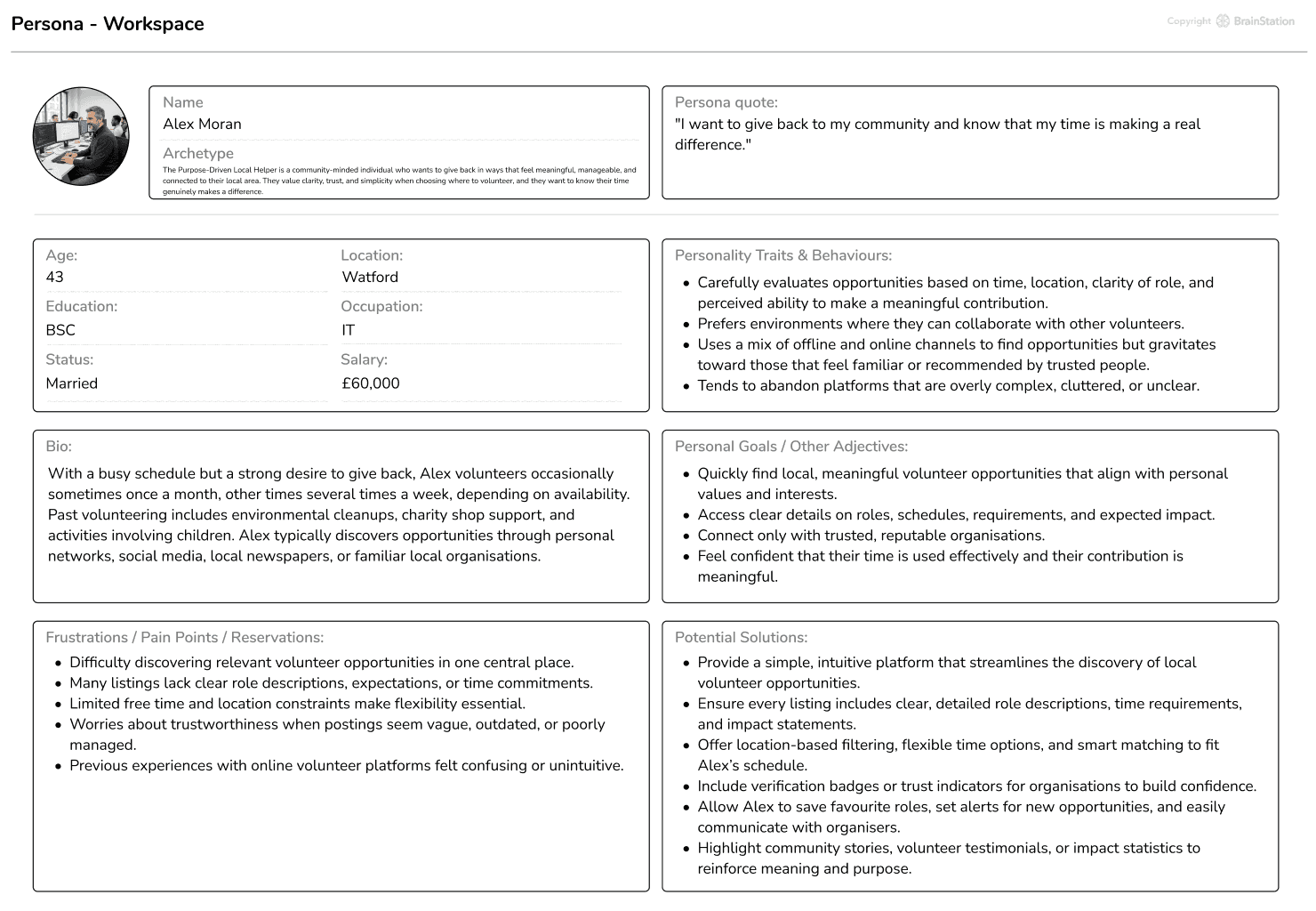 Affinity mapping really helped organise the different interviews to understand the similar patterns, insights, and user needs to make sure "Volunteer connect" can be as useful as possible. These were the 3 key themes that they all had in common based on their interviews.